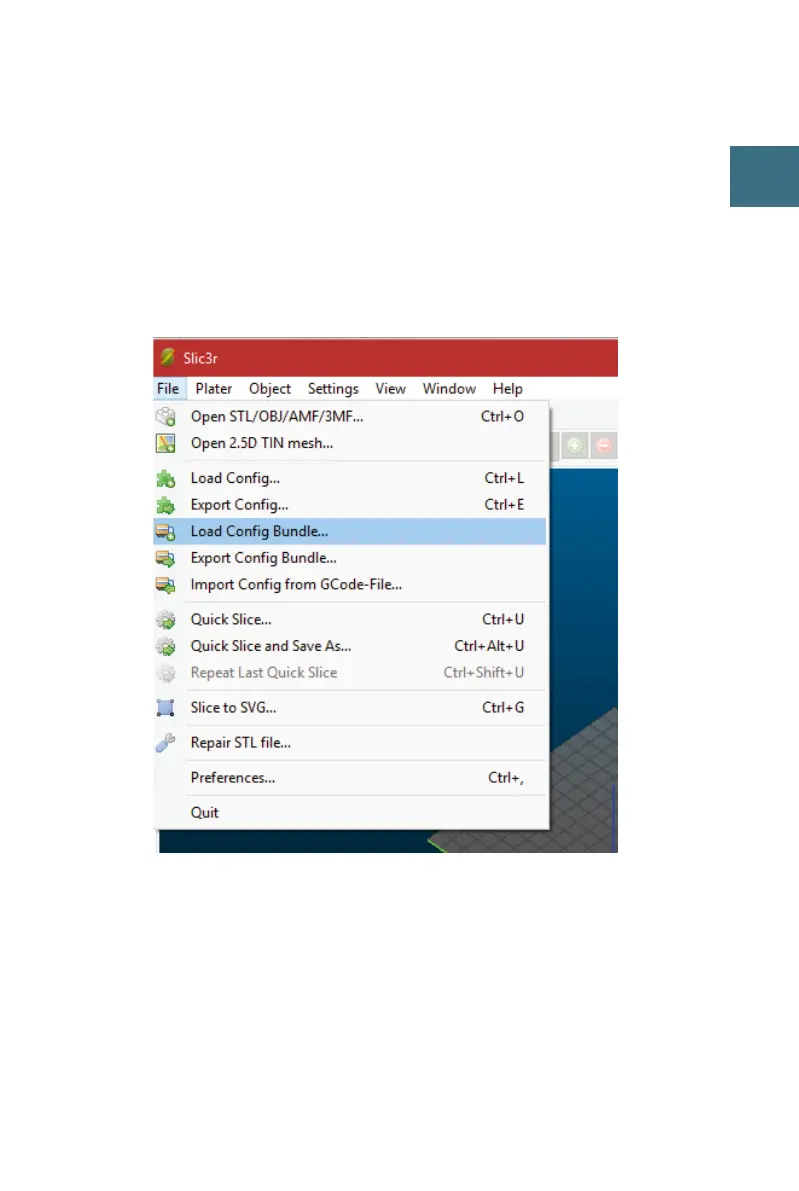 在 Slic3r 窗口中,转到 File -> Load Cong Bundle... 并加载随机 U 盘上