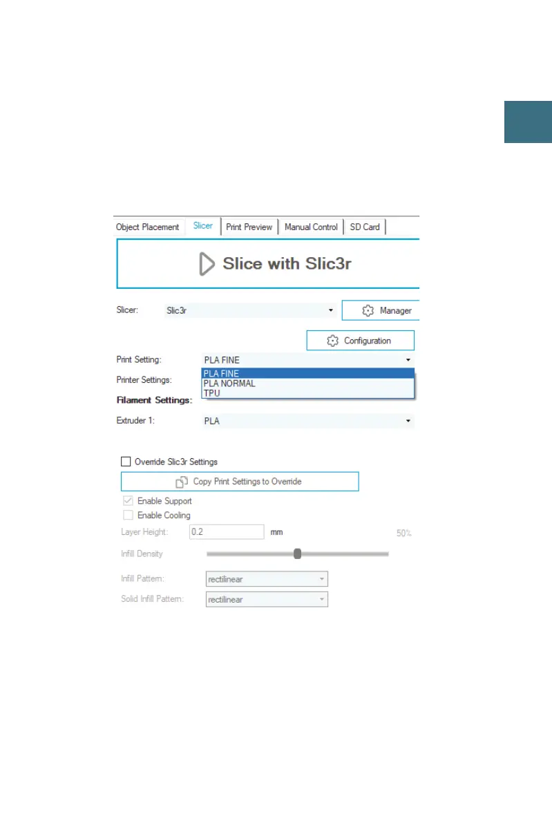 切片时,选择所需的设置。您可能需要根据实际情况对配置进行微调。
