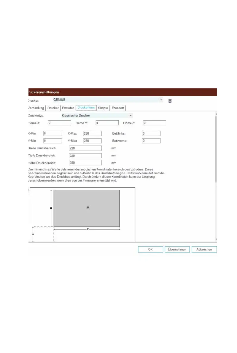 Gehen Sie zur Registerkarte Druckerform und konfigurieren Sie mit den