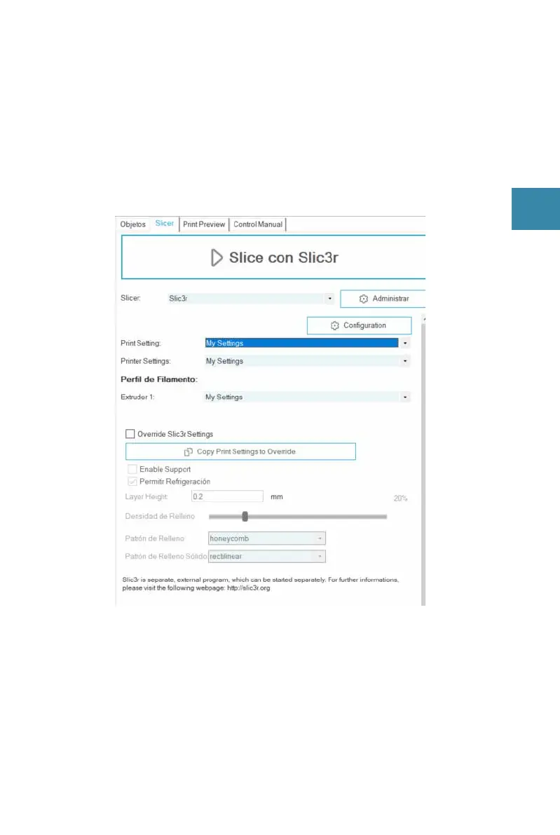 configuración de acuerdo con los filamentos de su elección.