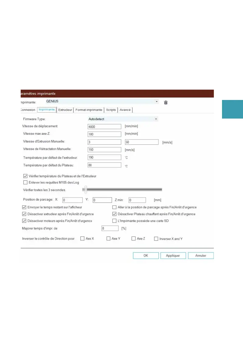 "Imprimante" et configurez l'imprimante comme indiqué ci-dessous: