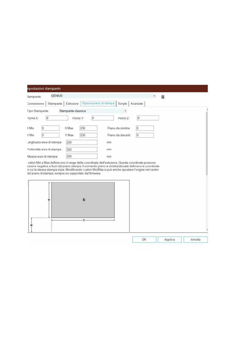 Altezza area di stampa: 250