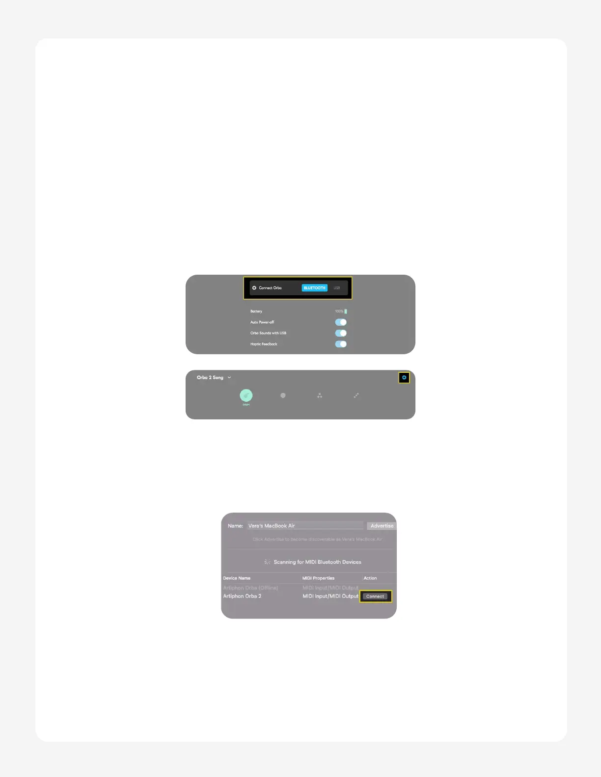 The simplest way to connect via Bluetooth is through the Orba app.