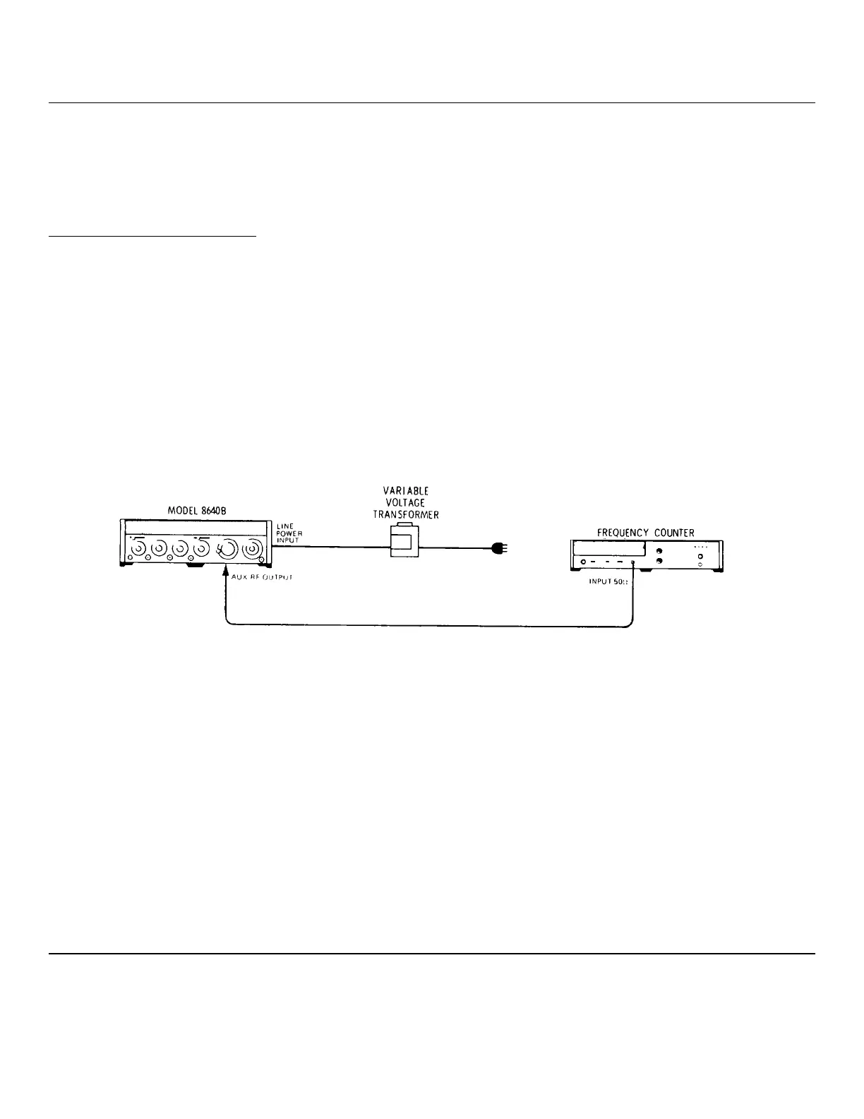 A frequency counter is used to measure frequency shift as line voltage is changed +5% to -10%.
