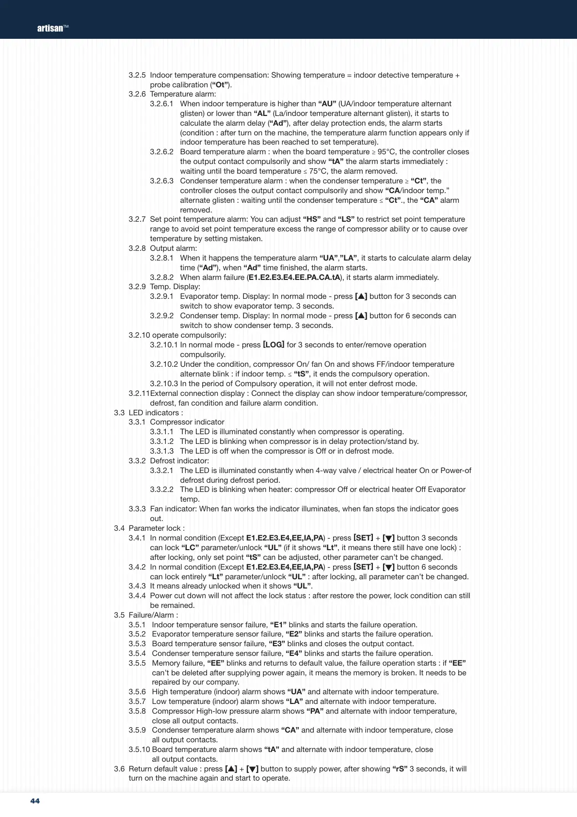 3.2.8.2 When alarm failure (E1.E2.E3.E4.EE.PA.CA.tA), it starts alarm immediately.