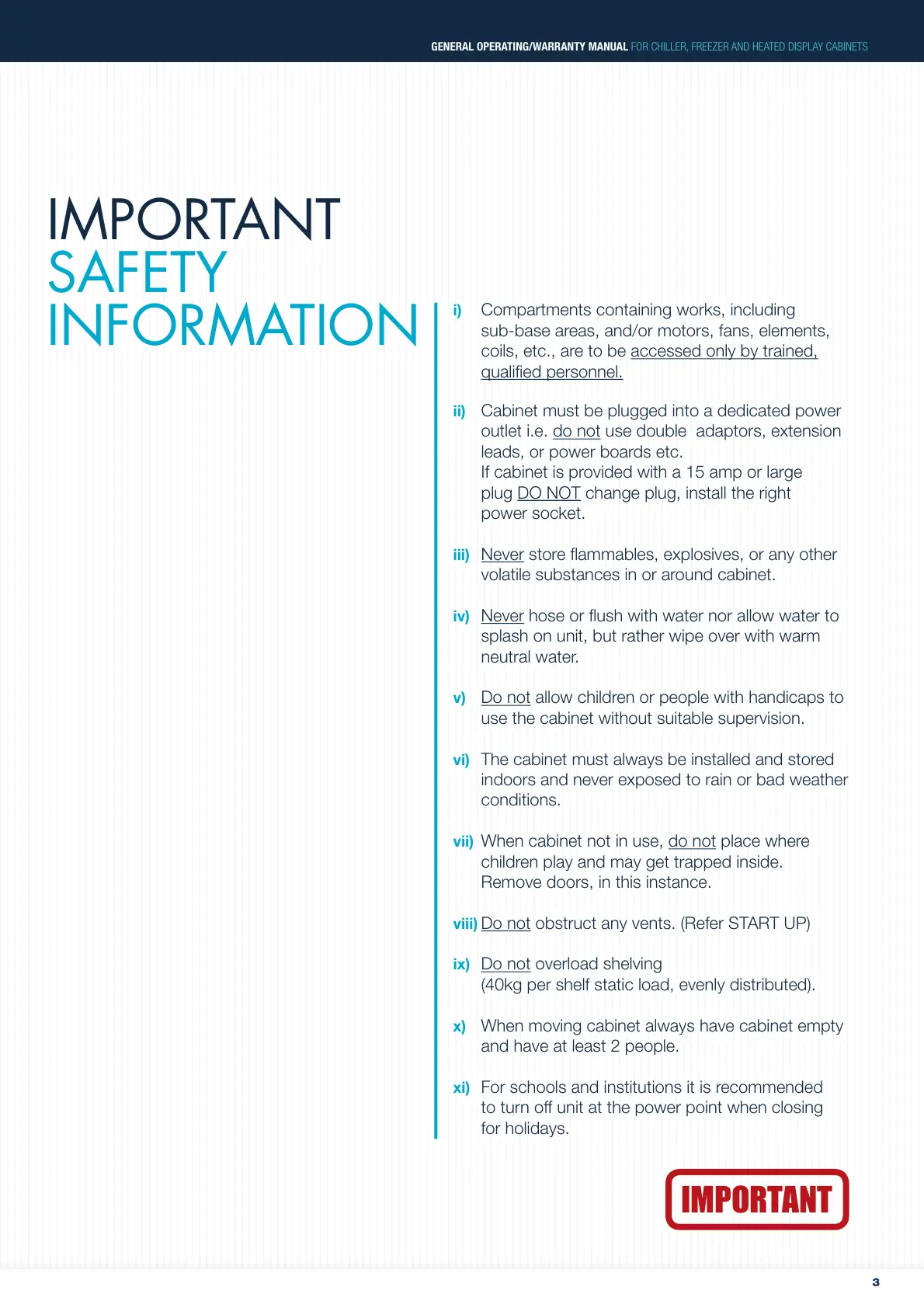 GENERAL OPERATING/WARRANTY MANUAL FOR CHILLER, FREEZER AND HEATED DISPLAY CABINETS