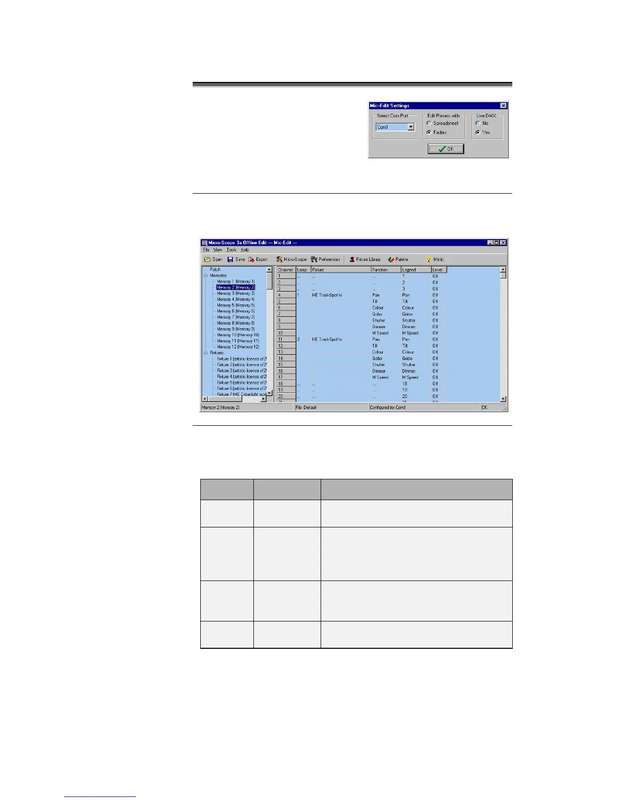 The columns of the Memory spreadsheet are identical to those