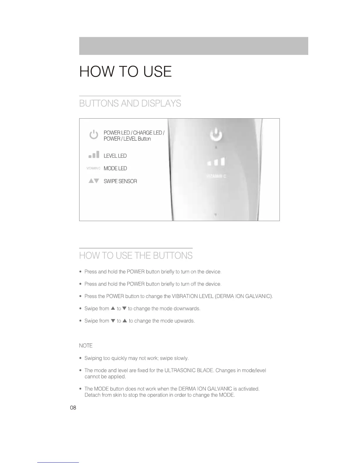 Artistry DERMASONIC - Buttons and Displays Overview