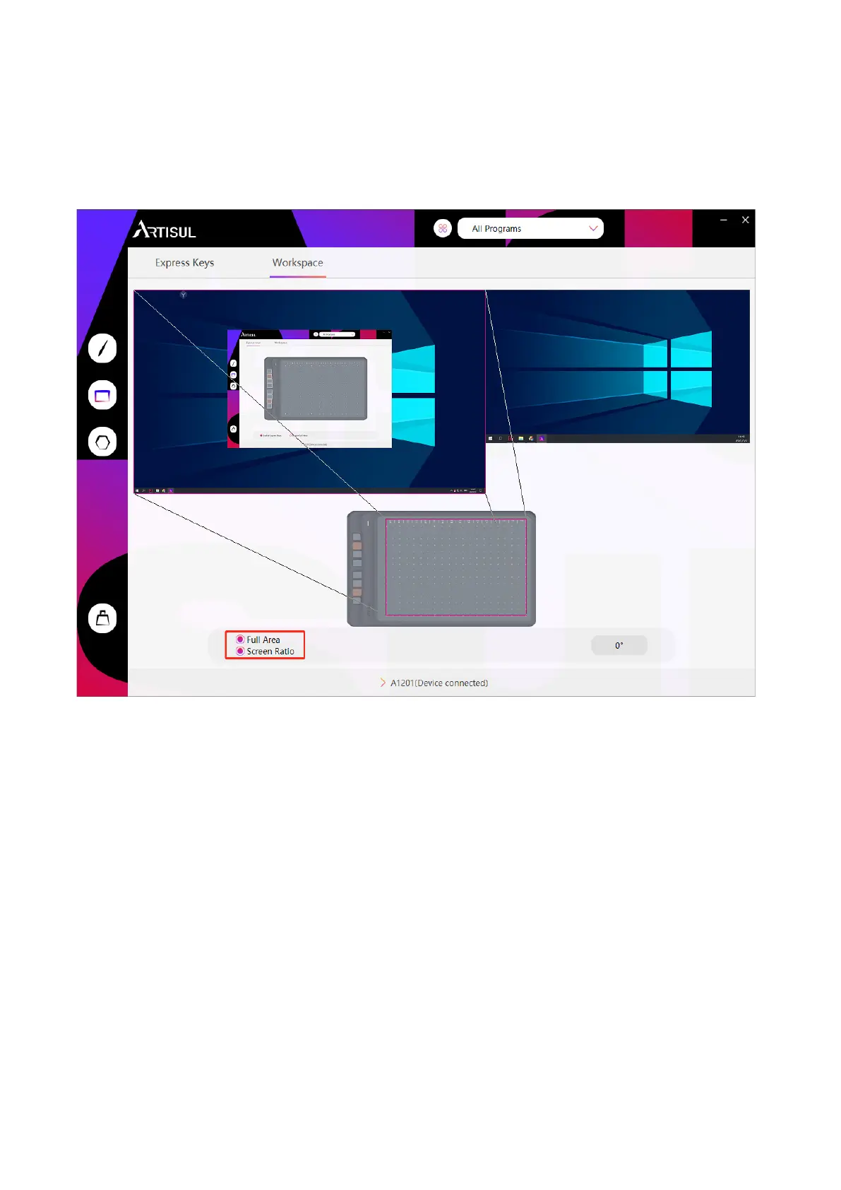 1. Full Area: the entire active area of the tablet. This is the default setting.