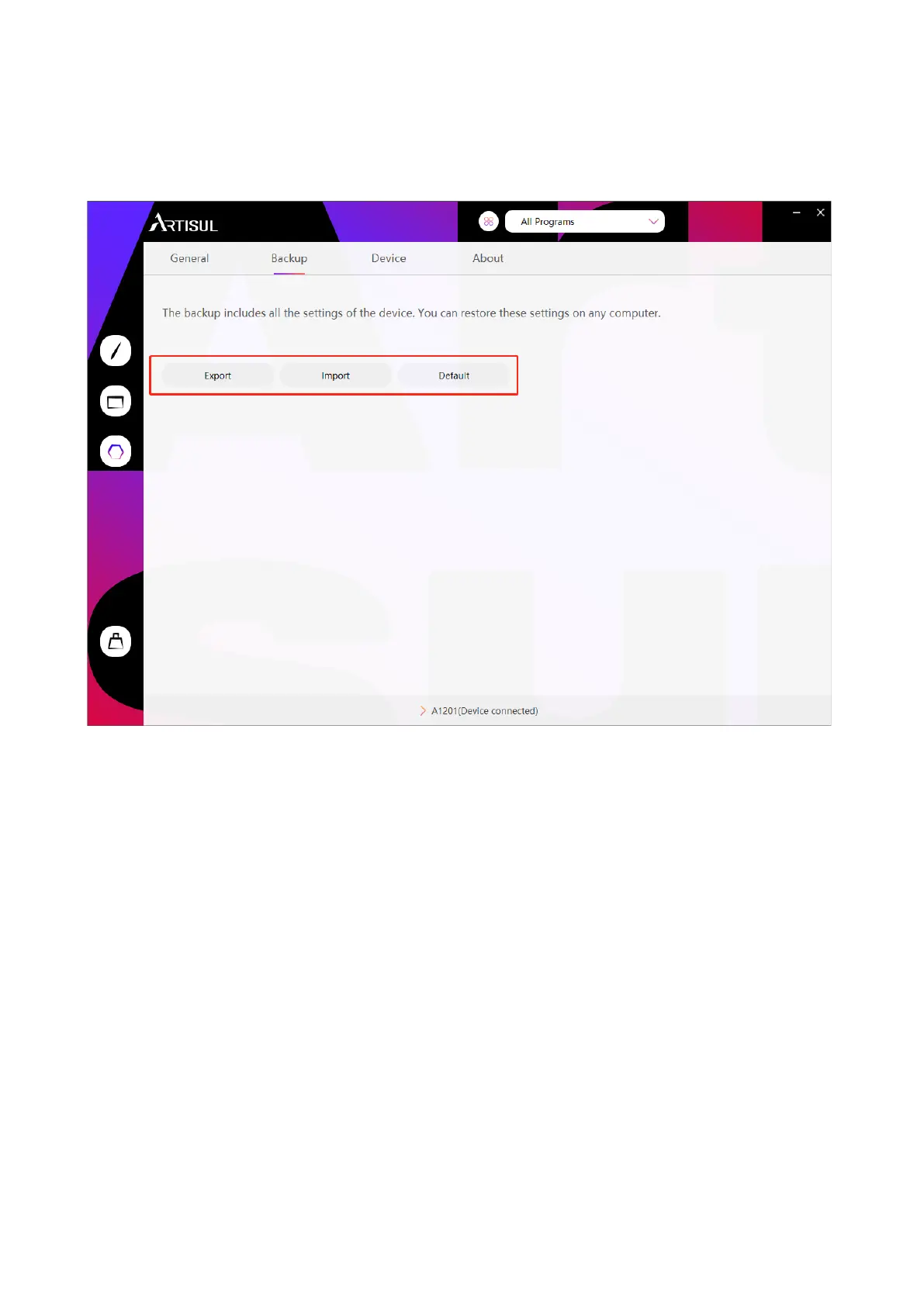 ARTISUL A1201 - Data Export and Import