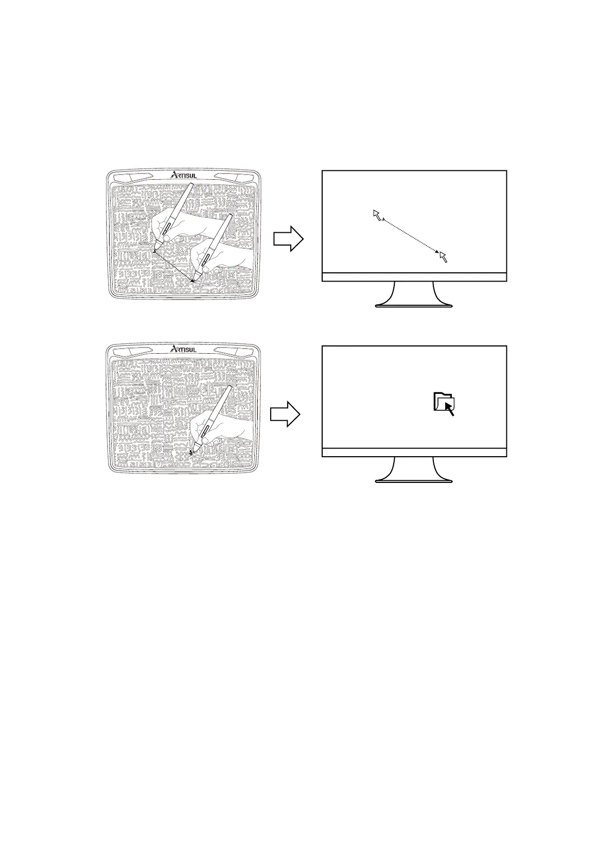 move to the new position accordingly. Press the pen tip on the tablet to make a selection. Tap