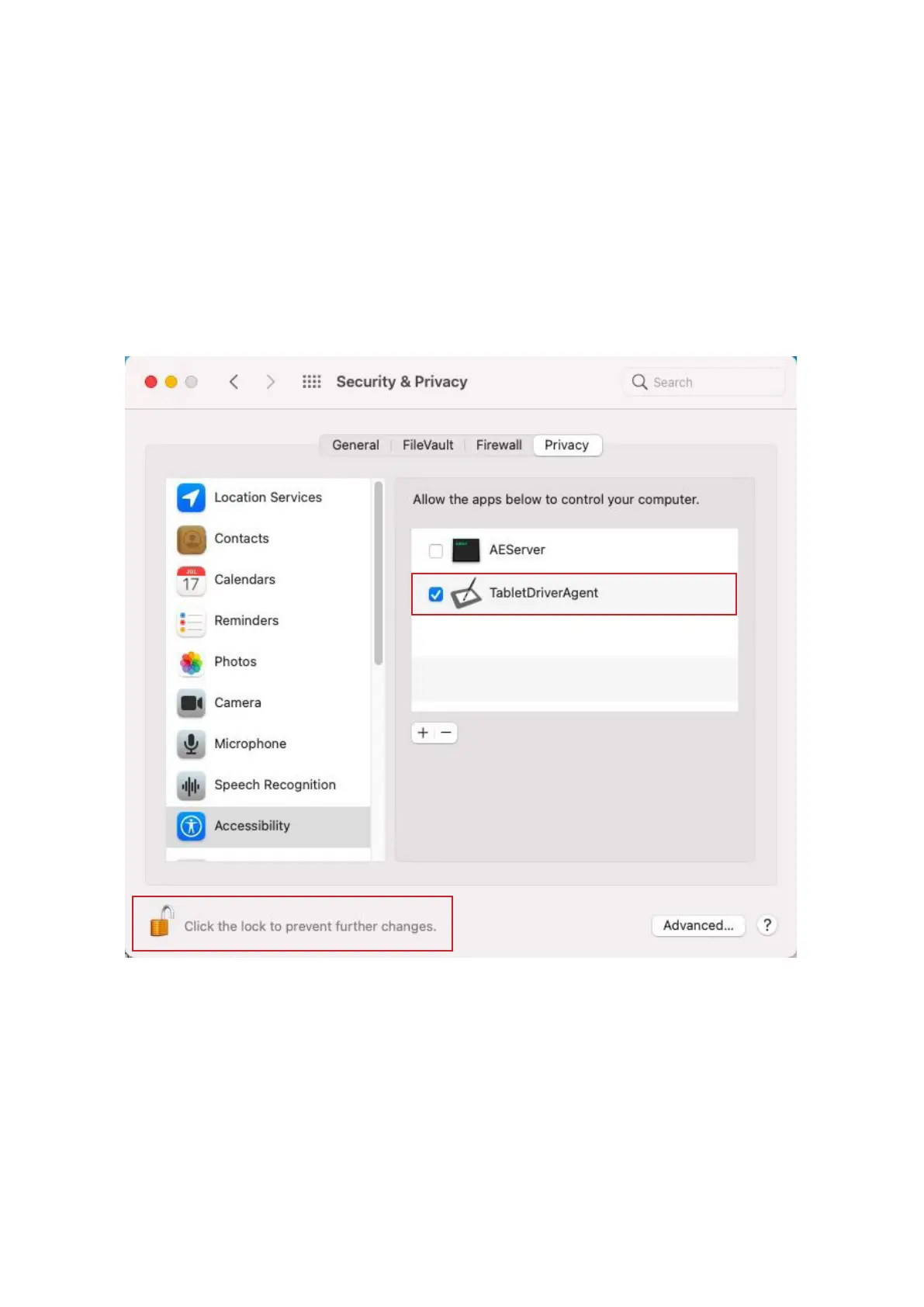 Privacy" window appears. Click the lock icon in the lower left corner to make