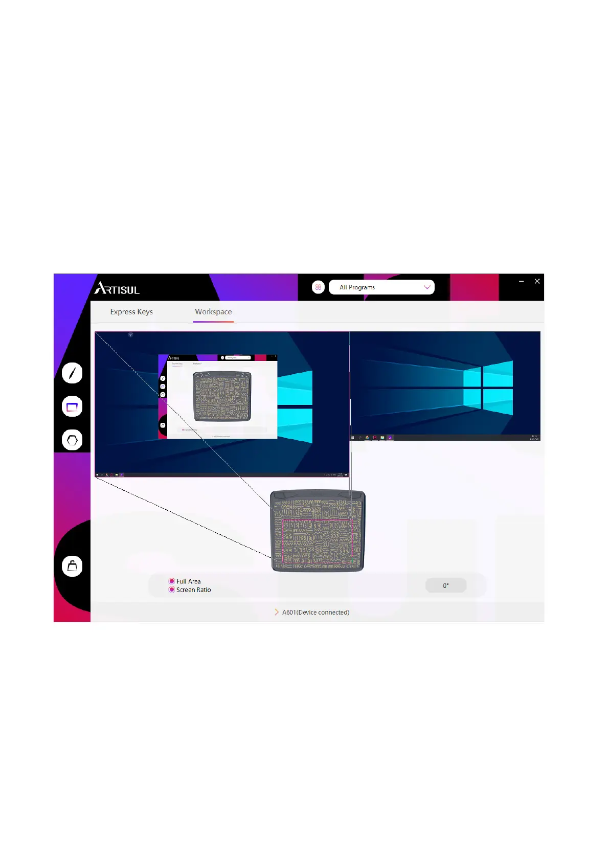 Select the monitor to define the relationship between pen movement on the tablet and cursor