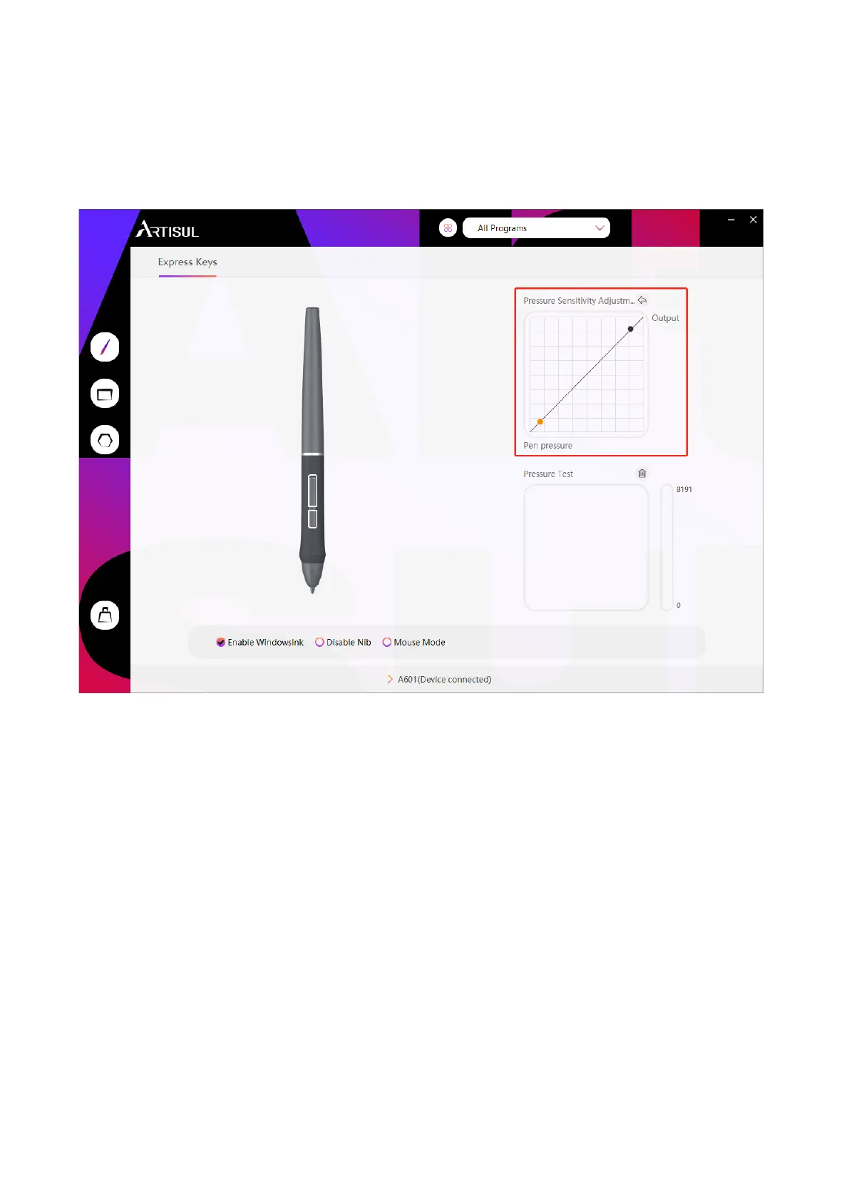 ARTISUL A601 - Pressure Sensitivity Adjustment