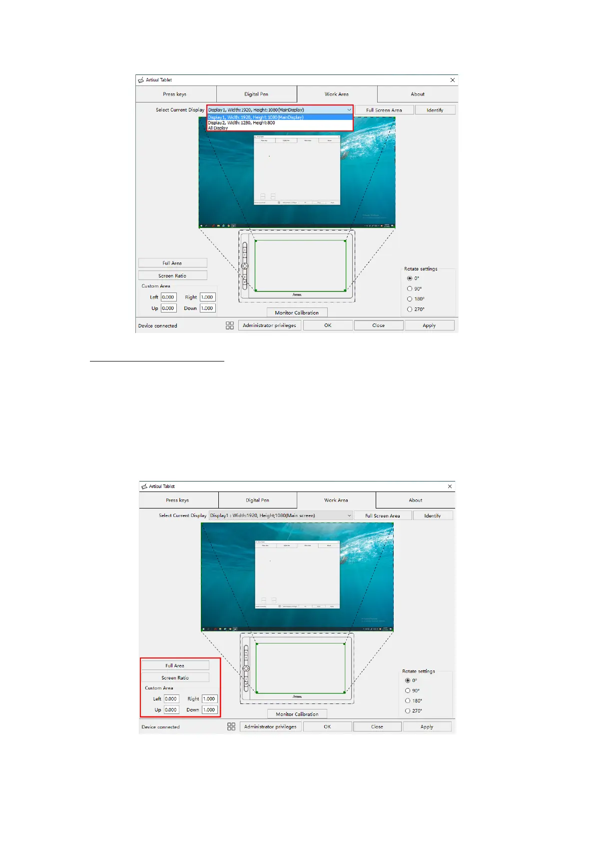 3. Customized Area: 1.> Enter coordinate values. Or 2>. Drag the corners of the