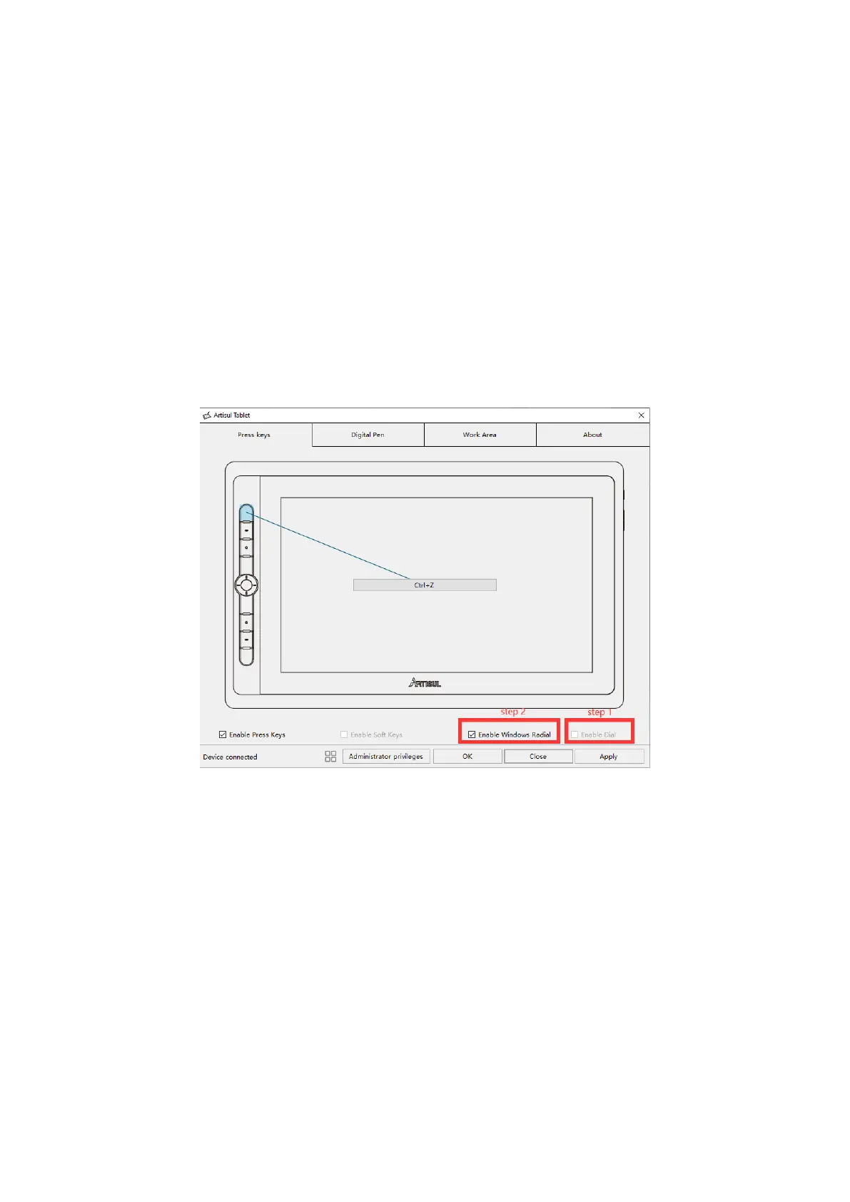 If you want to“Enable Windows Radial", please uncheck “Enable Dial” first
