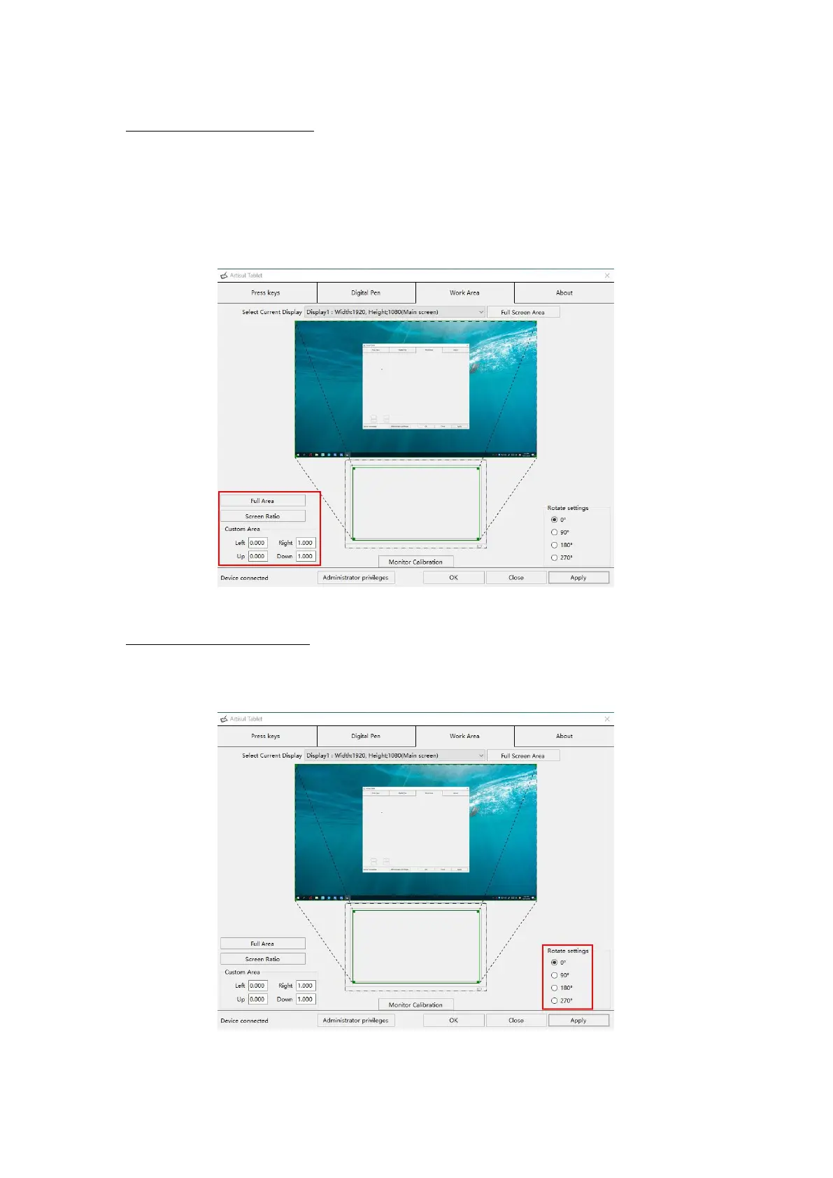 3. Customized Area: 1.> Enter coordinate values. or2>. Drag the corners of the