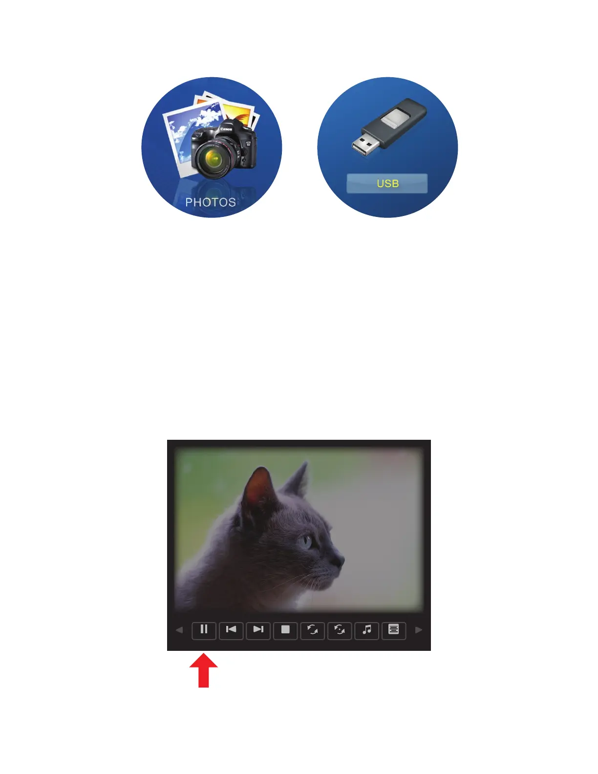If the file you are trying to project is a still image, click the “PHOTOS” icon and then the