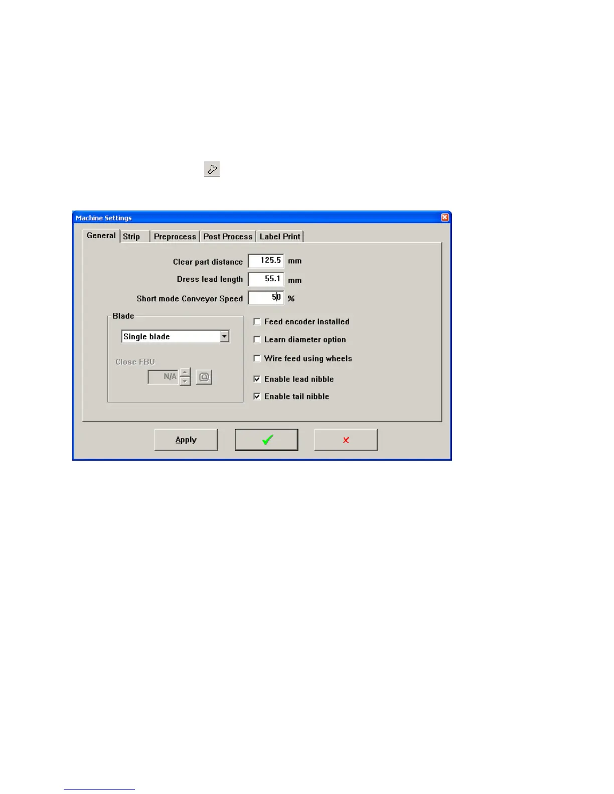 Blade type selection for configuring the type of blade holder mounted on the machine.