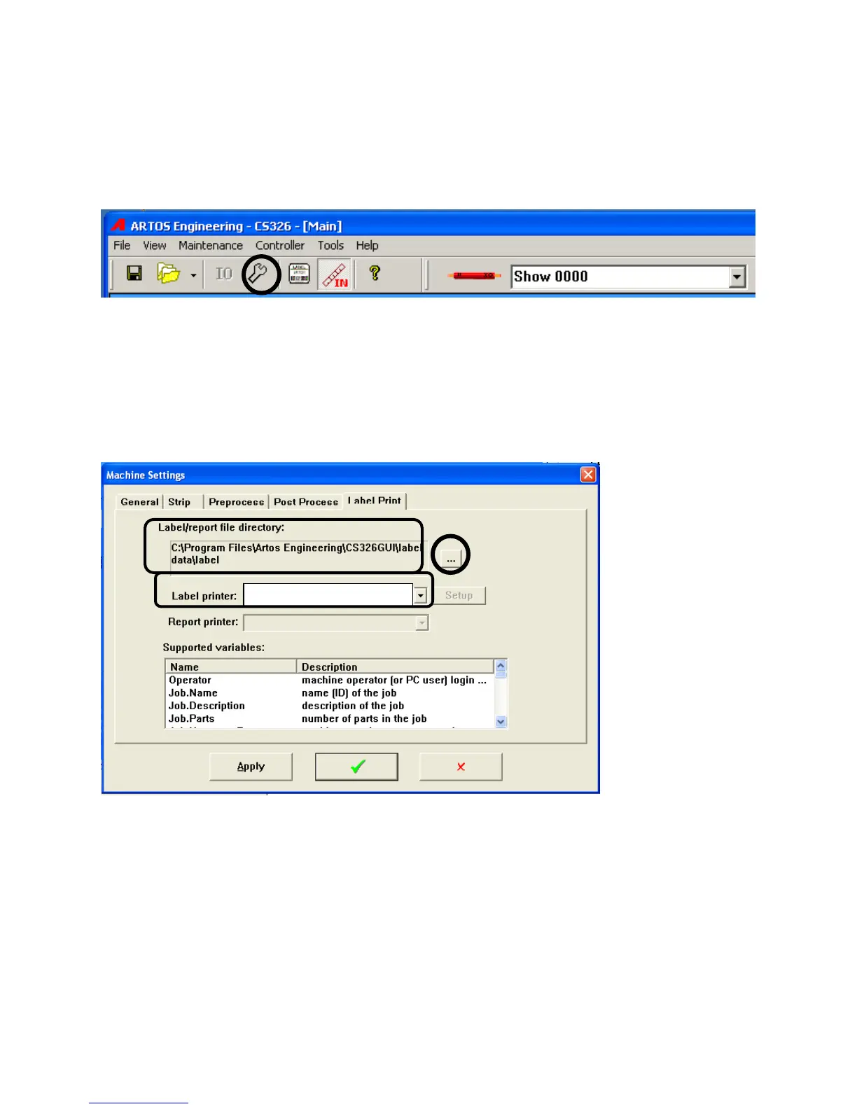 C:\program files\Artos Engineering\CS326GUI\Label Data\label . If it doesn’t browse and select
