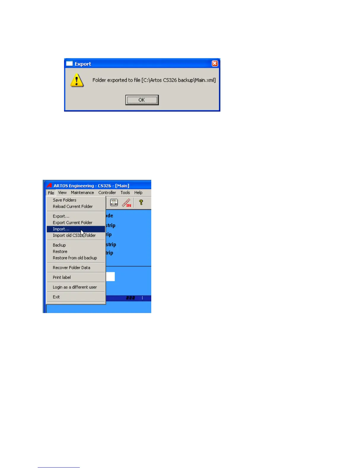 The data import function takes a previously saved *.xml file and imports it into the folder that is currently