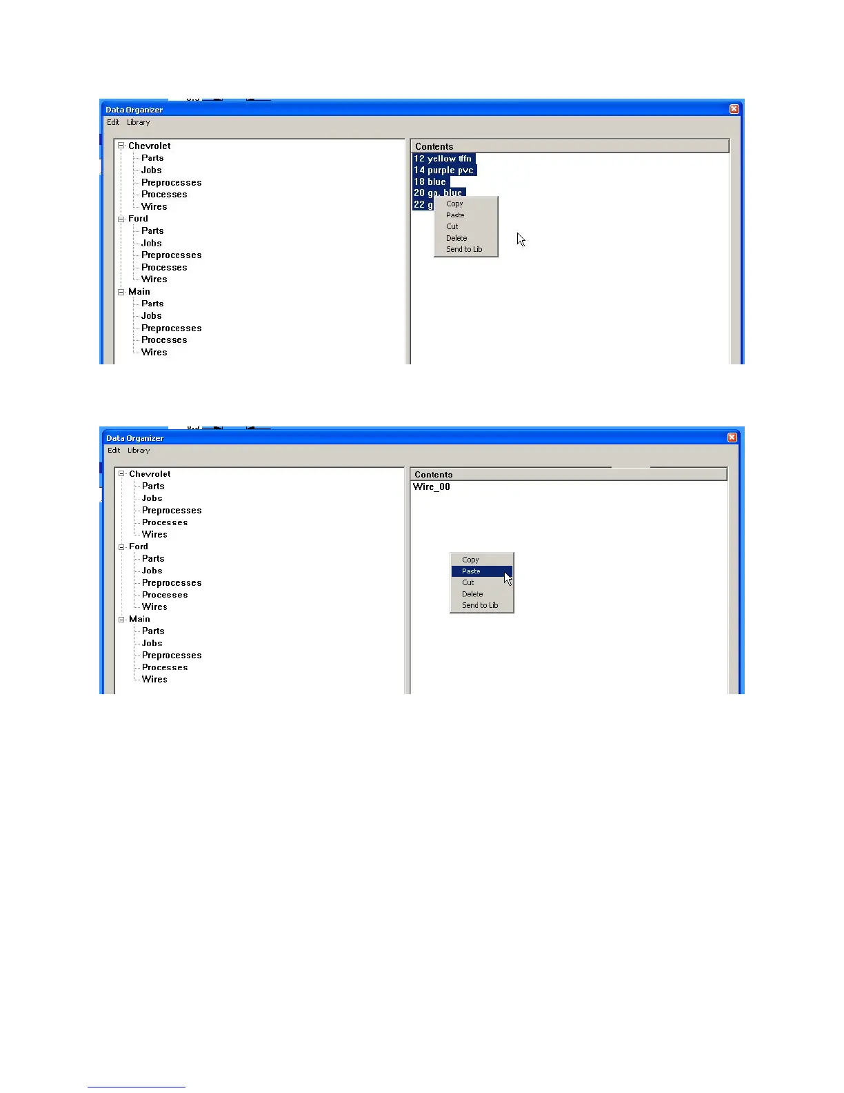 3. Navigate to the folder you wish to copy the items to. (example, the wires in Ford)