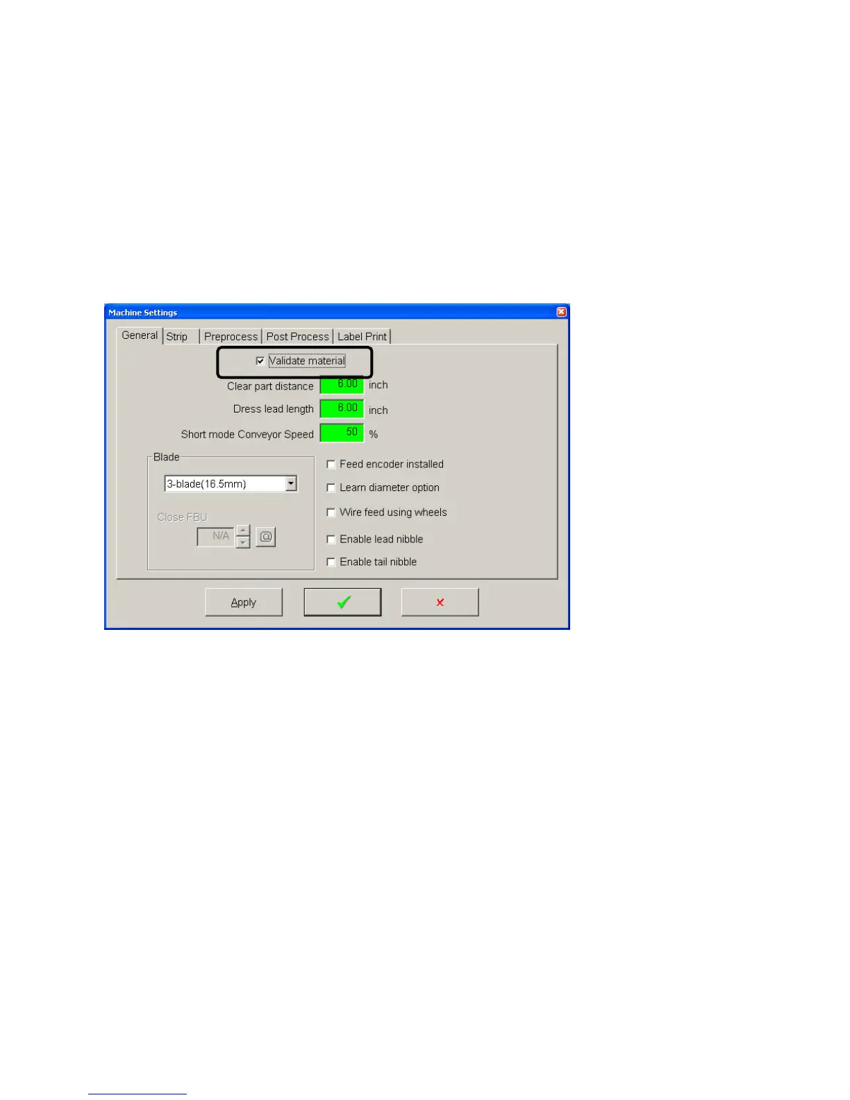 When the machine is set for material validation mode, you have to scan the bar code of the wire,