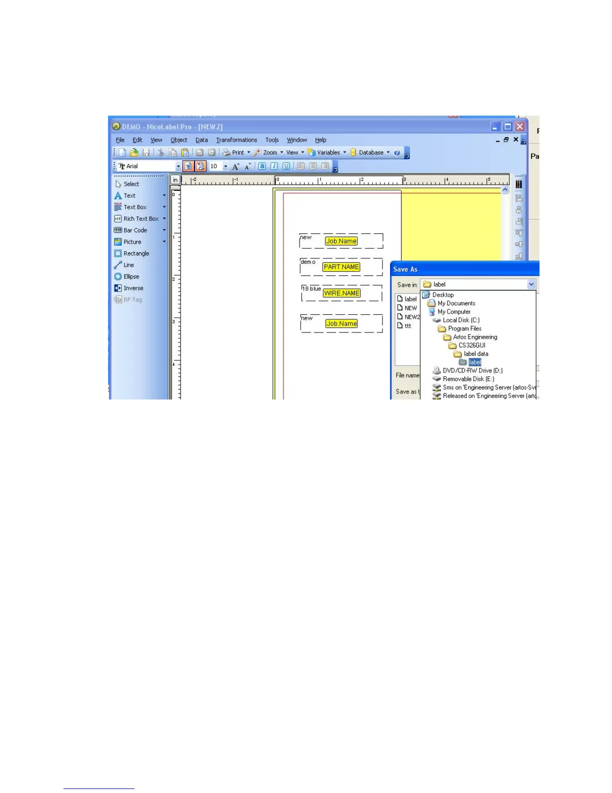 C:\Program Files\Artos Engineering\CS327GUI\Label Data.