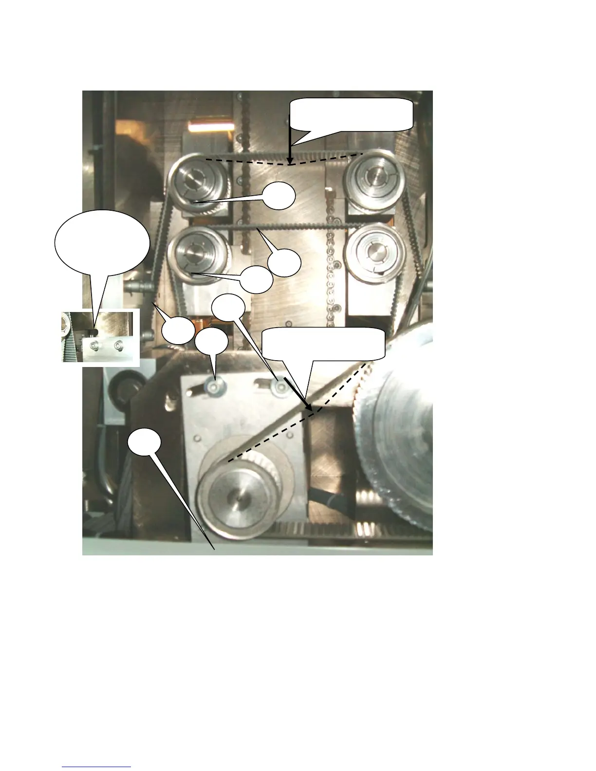 The feed drive belts adjustment must always be made with the system open. Before turning off the