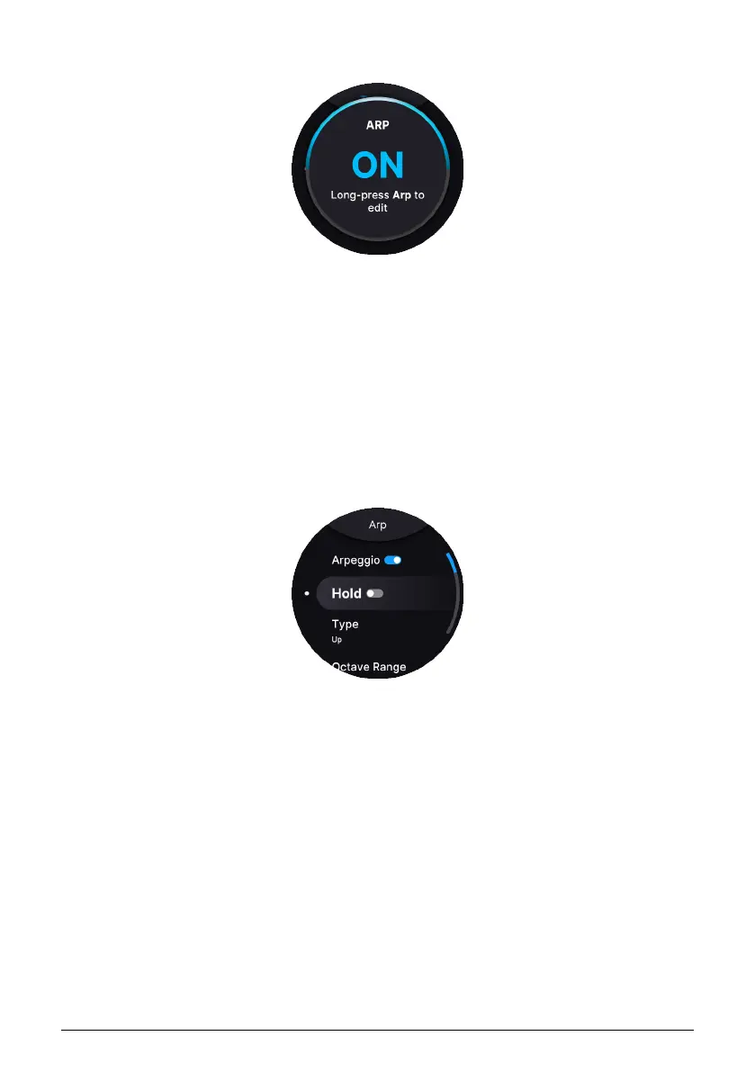Long-press the Arpeggiator button to enter its settings menu.