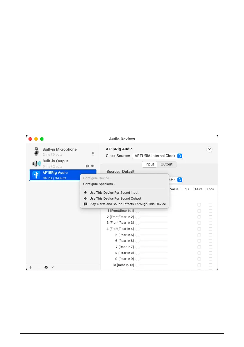 1. Open the Audio Devices window and find "AF16Rig Audio" on the list of devices at left.