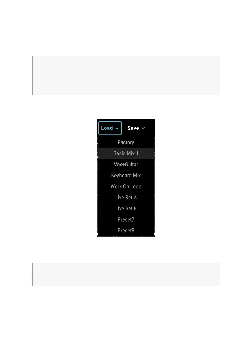 The Load icon reveals a drop-down menu of the eight presets plus the Factory preset, a