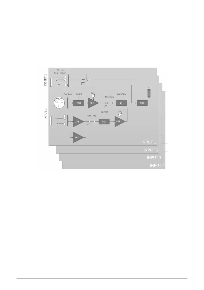 • The 1/4" input path is similarly designed to handle Line and Instrument-level