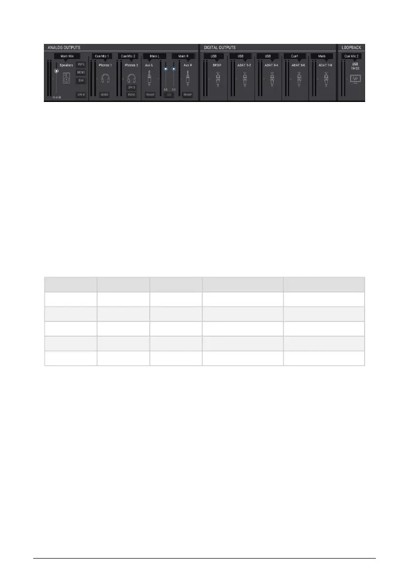 Note that not all outputs are stereo pairs: The Aux L / R outputs are the exception. They can