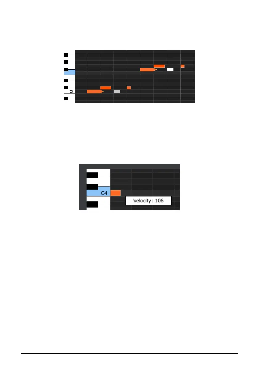 The color of the selected note will change to indicate the velocity value: white is the lowest