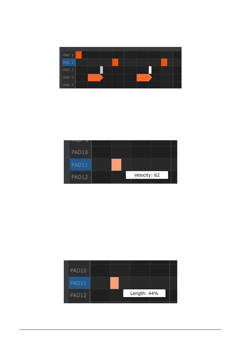 The color of the selected event will change to indicate the velocity value: white is the lowest