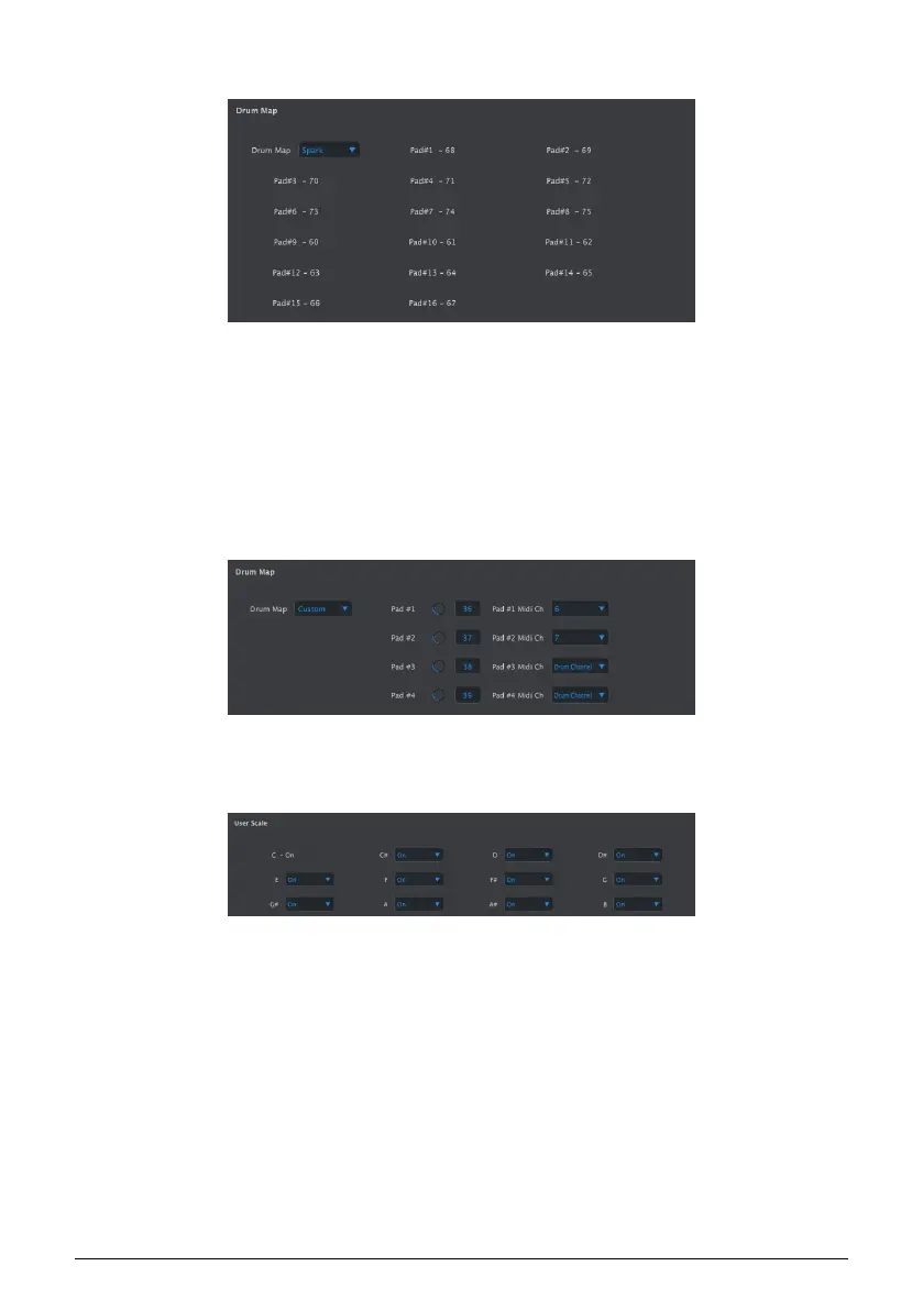 • Custom: user-definable drum mapping. Enter a MIDI note value for each pad