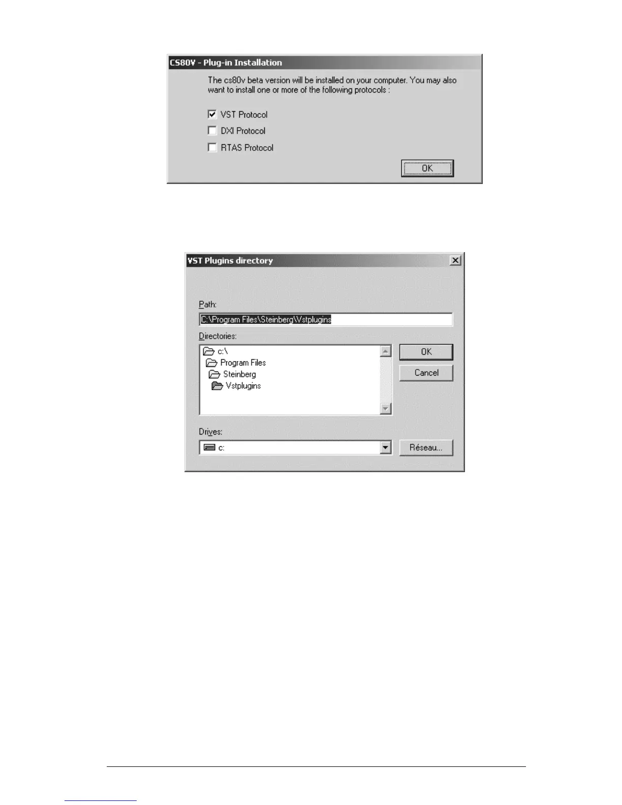 For the VST and RTAS protocols, you must choose an installation folder in order for the