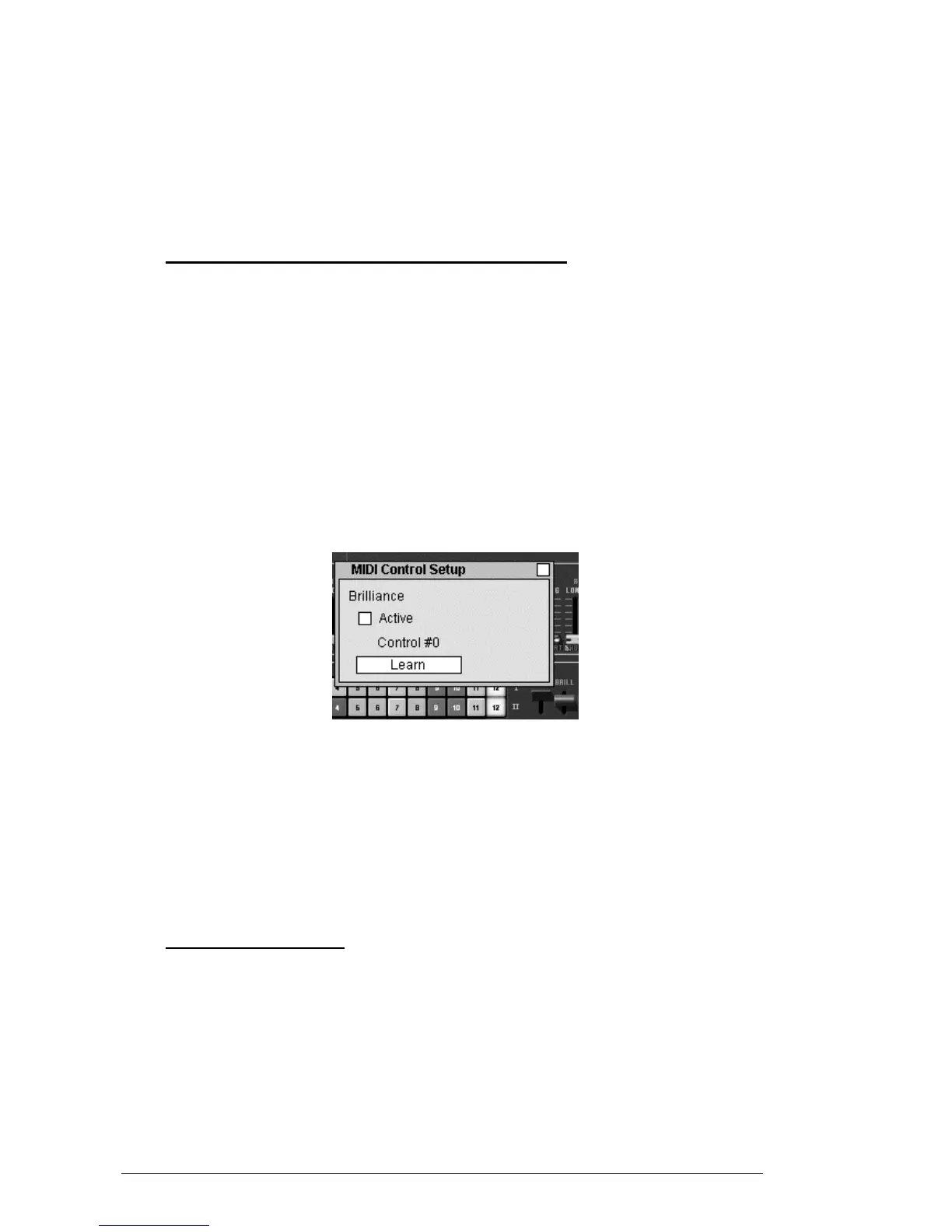 Click on the «Brilliance» knob while holding the Ctrl key down. A MIDI assign dialog