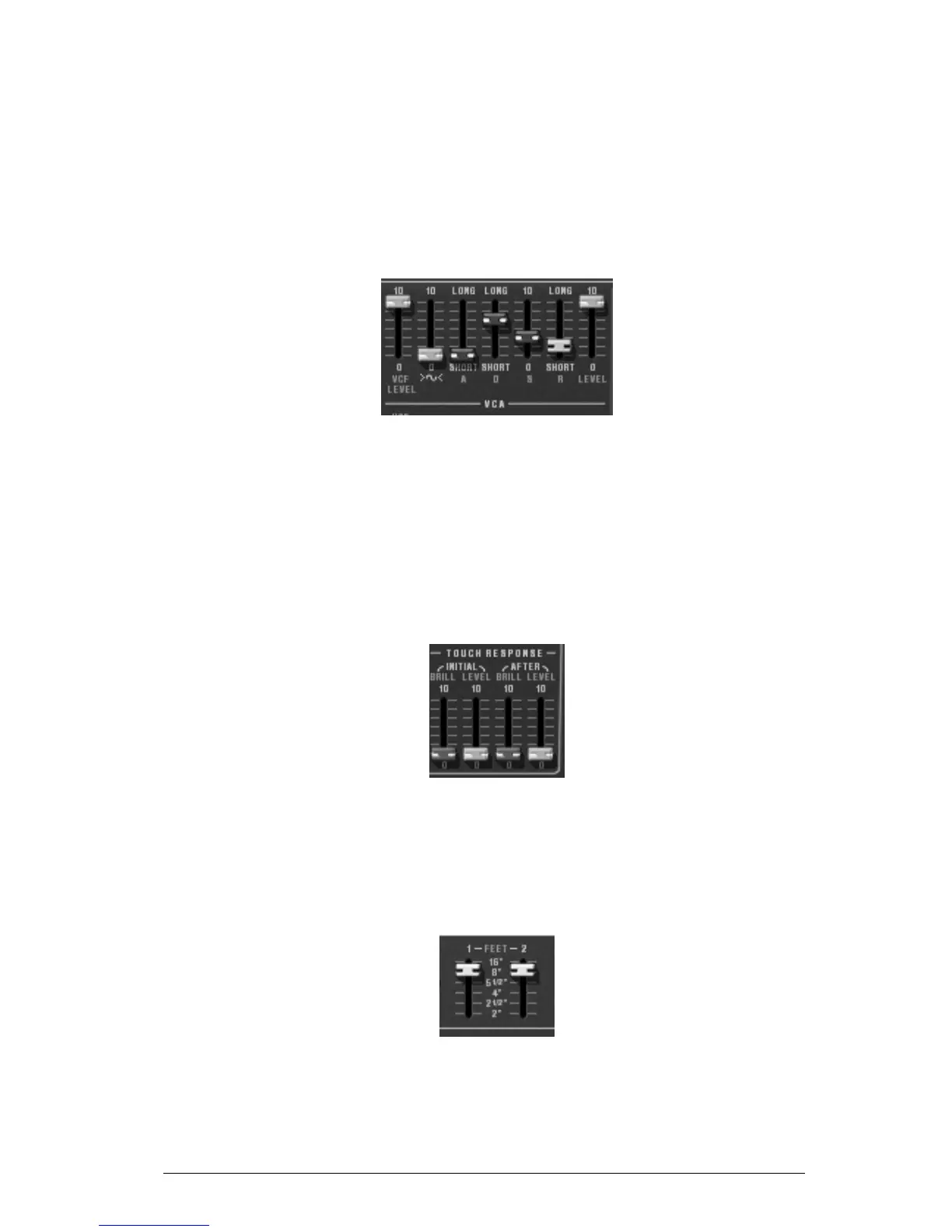 Four faders set the action of the velocity and of the pressure of the keys on the