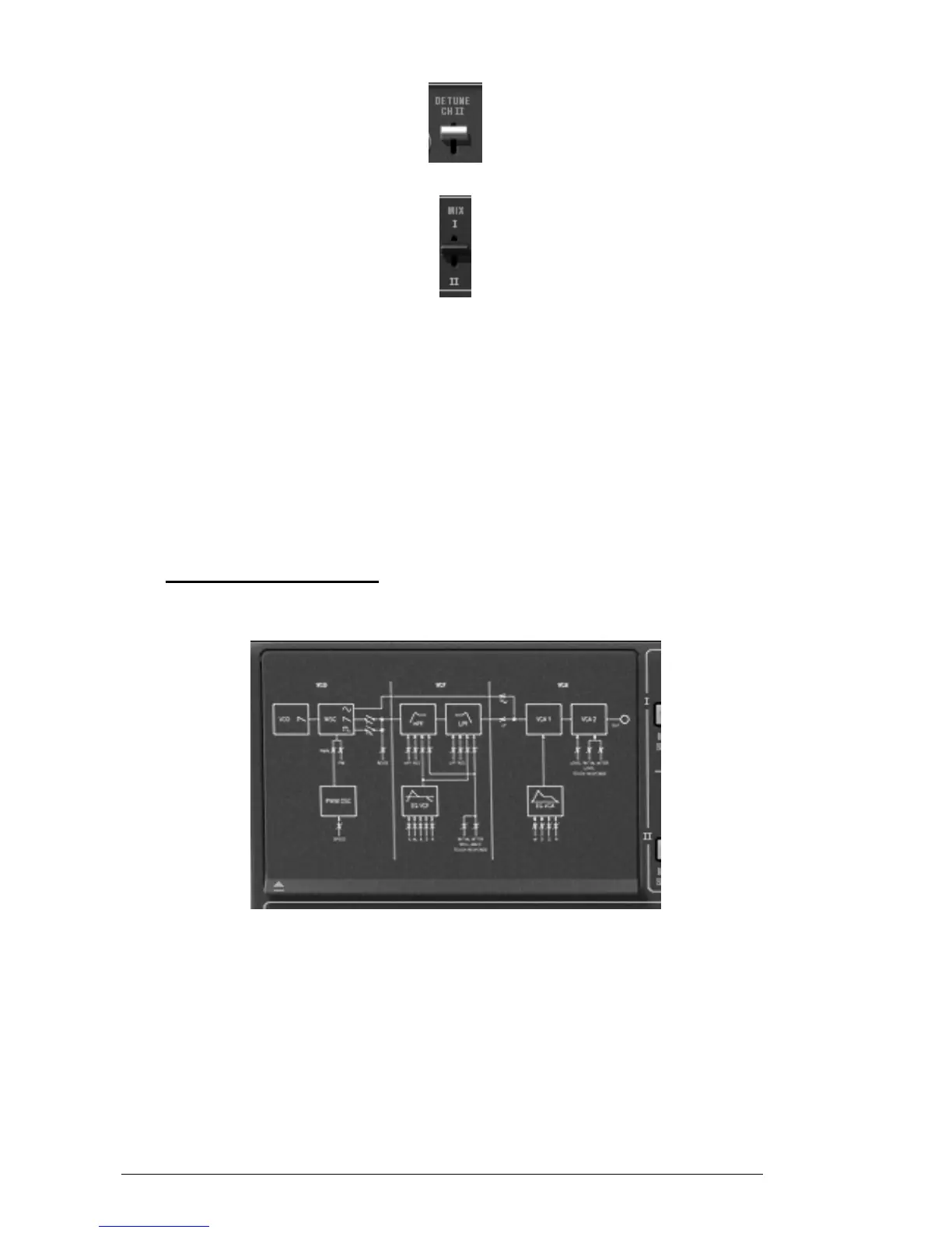 The «LINK» button connects the oscillator of the second line towards the filters of the