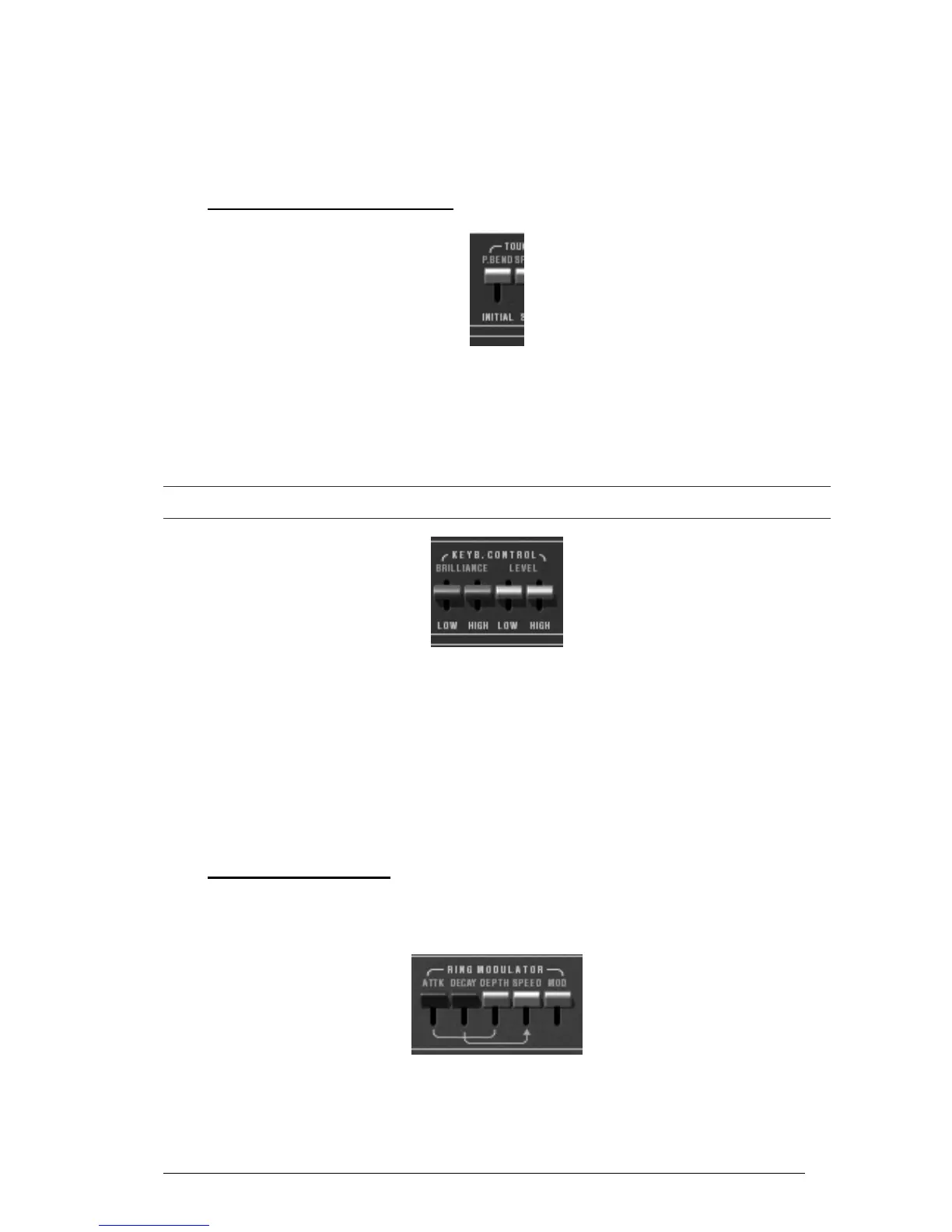 The faders under the «KEYB. CONTROL» label set the key follow rate. The faders under
