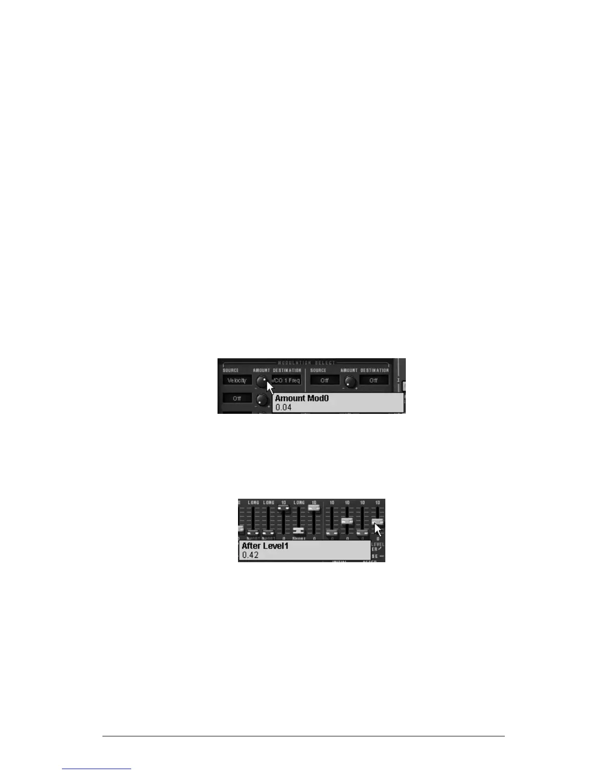 keyboard, the volume of voice 2 will progressively appear, this will create a morphing