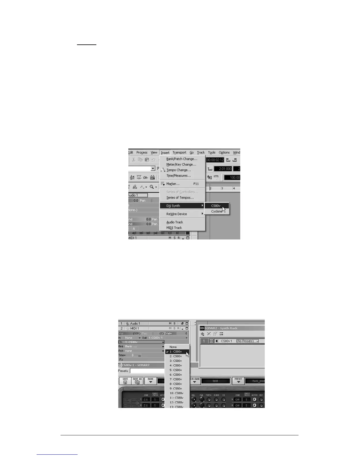 MIDI track and select the CS-80V as MIDI output for this track by using the menu for this