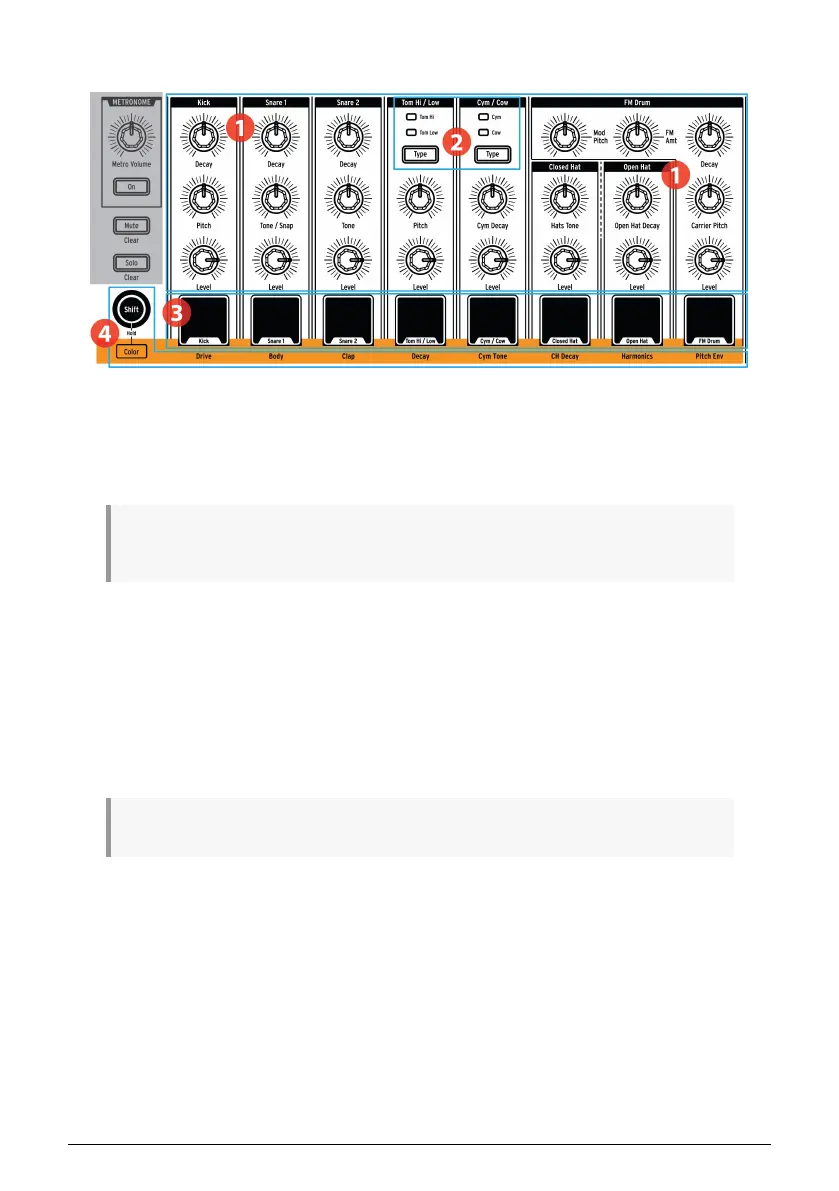 Each instrument has its own set of sound-sculpting parameters. The lines between the