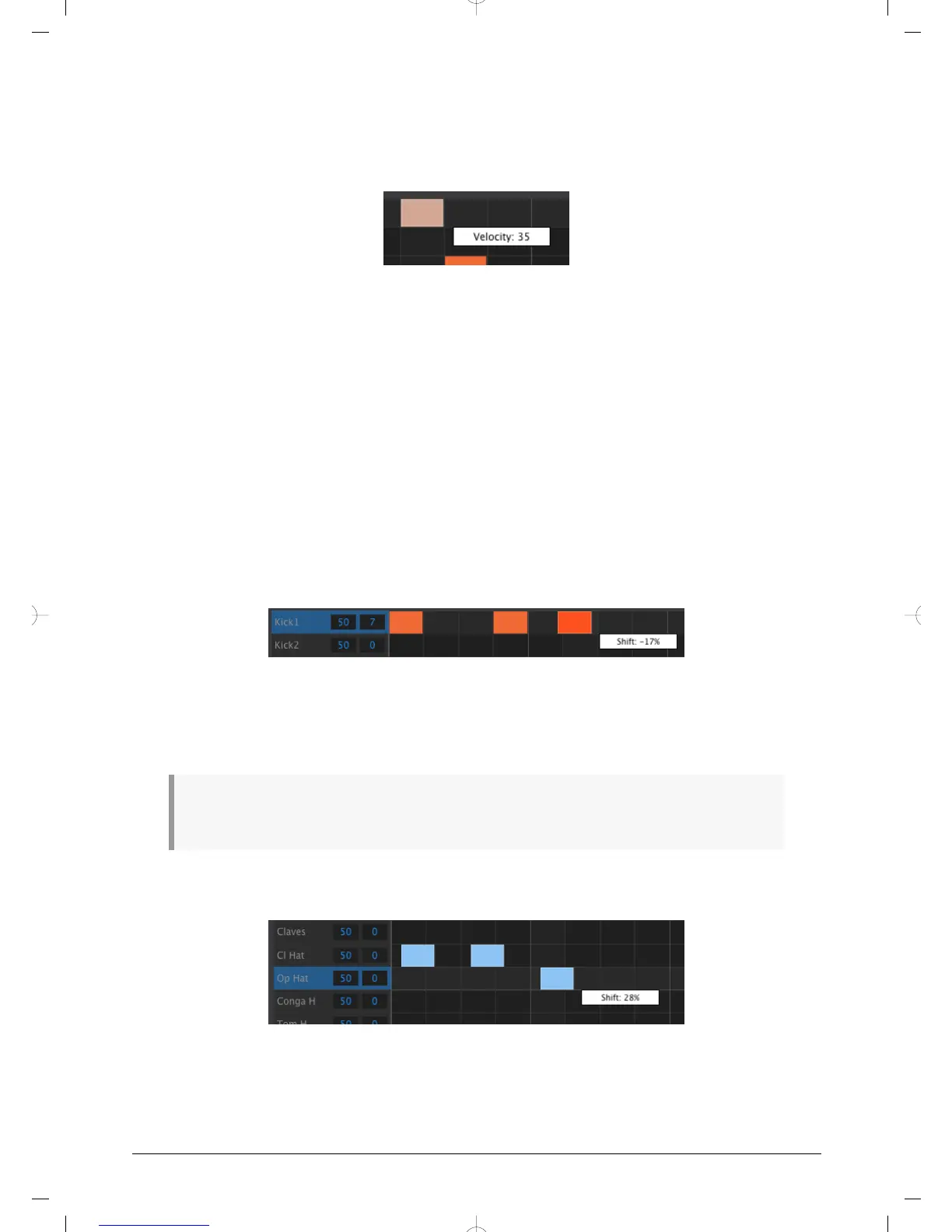 In the image above the Kick 1 drum has two events that are not shifted, while the third event