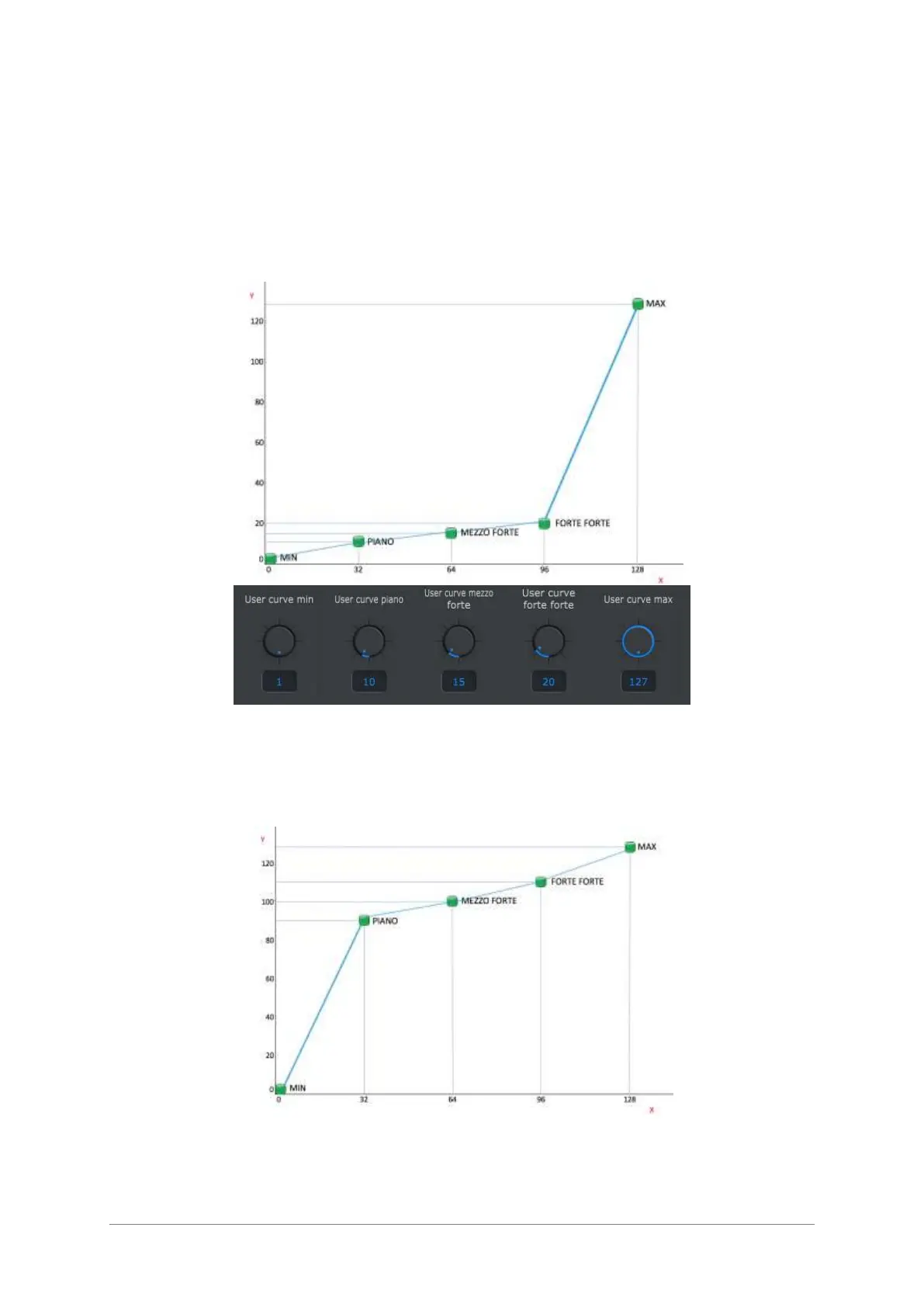 If you use these next parameters for the user curve, you will get a very “soft” keybed.