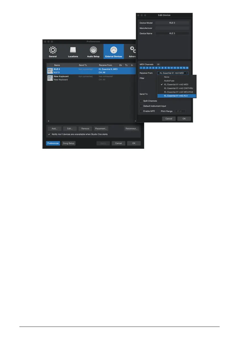 • KL Essential (49/61) mk3 MIDI: Enables MIDI communication via the USB-C port