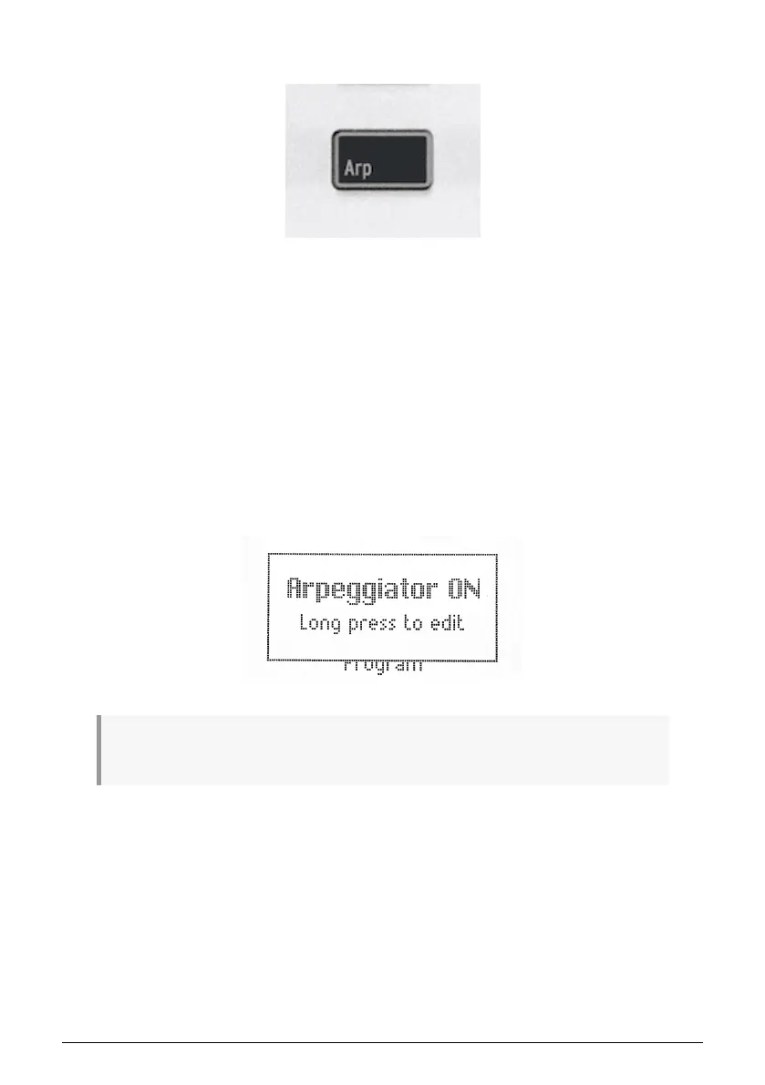 To turn the arpeggiator on and off, press the Arpeggio button. The KeyLab Essential display