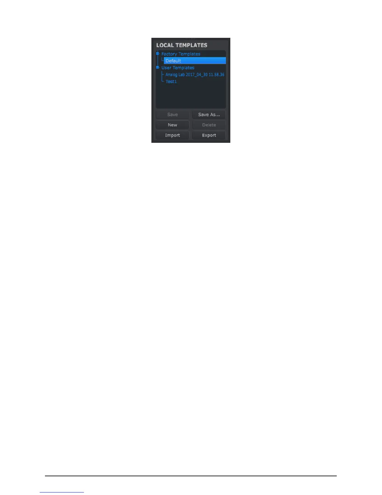 • Factory templates - This section displays the default settings of KeyLab Essential,